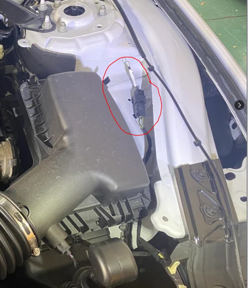 The plug is located under the hood of the vehicle to the right of where the stock airbox would be on the fender apron.